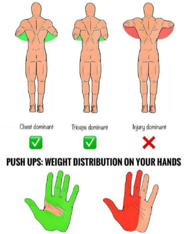 • Push-ups done with proper form will strengthen the abdominal and back muscles.